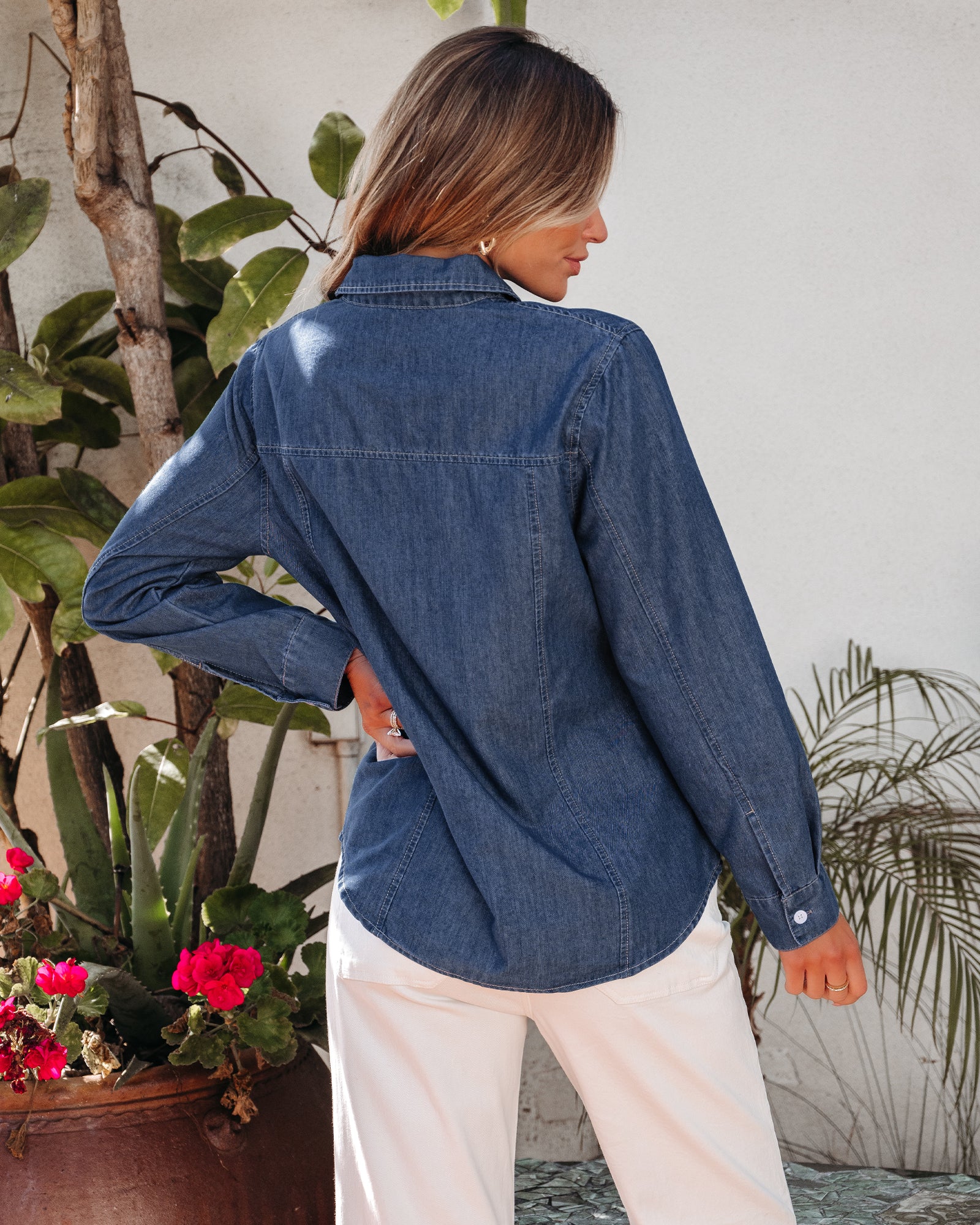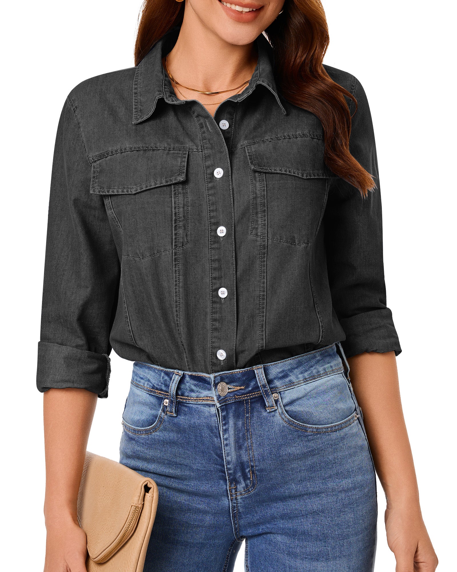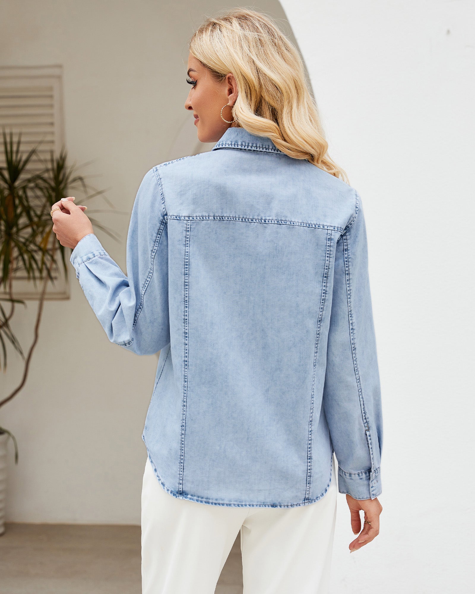 - Overall style: This denim shirt top is mainly long-sleeved, with a shirt collar and two flap chest patch pockets on the front, which is practical and visually symmetrical, giving people a unique and exquisite beauty.